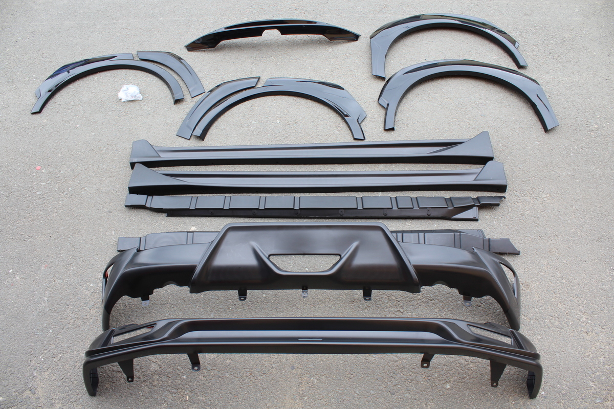 Материал- пластик. ПОД ПОКРАСКУ. В комплекте: передняя и задняя губа, пороги, фендера и спойлер на заднюю дверь(+крепеж).