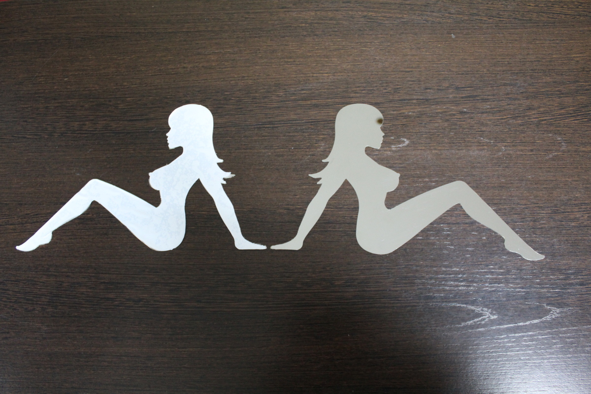 Хром стикер (большой) в комплекте -2 металлических женских силуэта .