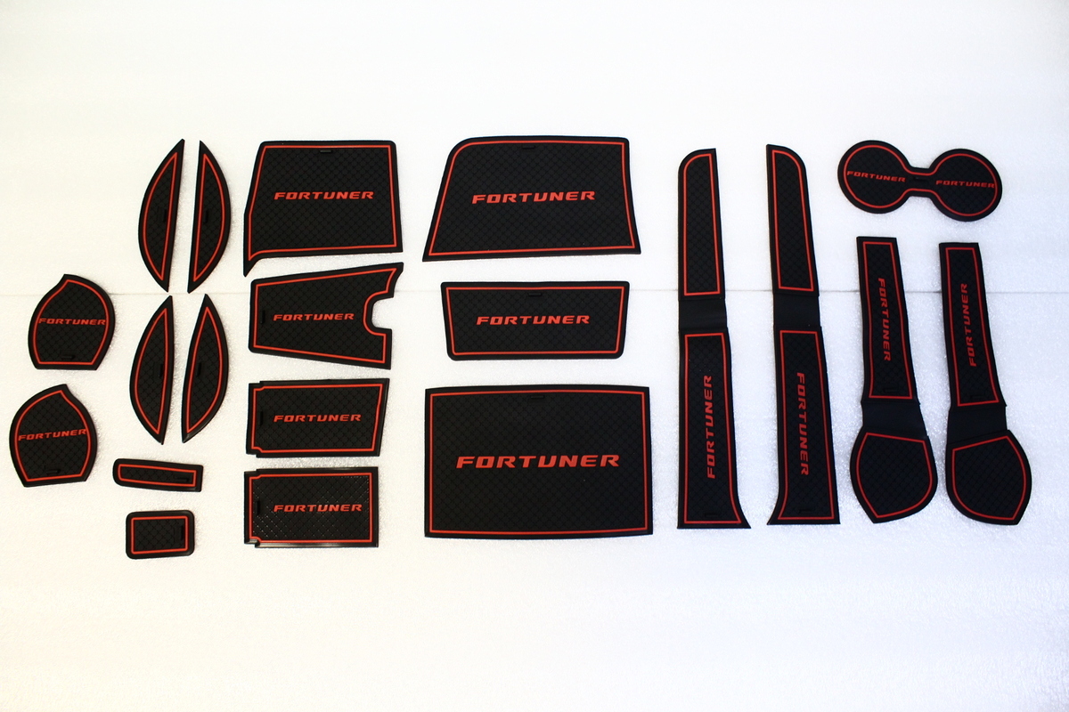 Коврики в кармашки и ниши салона и консоли Fortuner 2015+, черно-красные