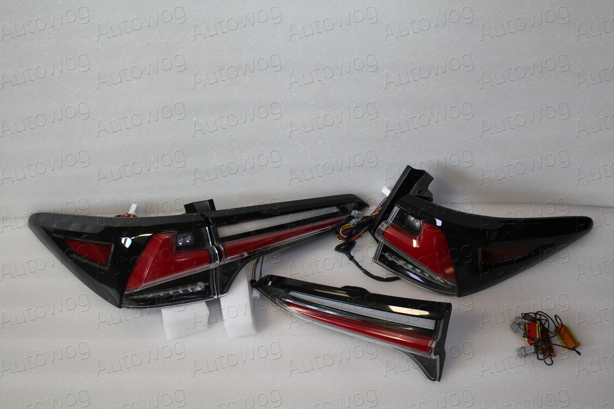 Стопы на Fortuner с 2017, 2018, 2019 года, КРАСНЫЕ, стиль Lexus бегающий повторитель поворота