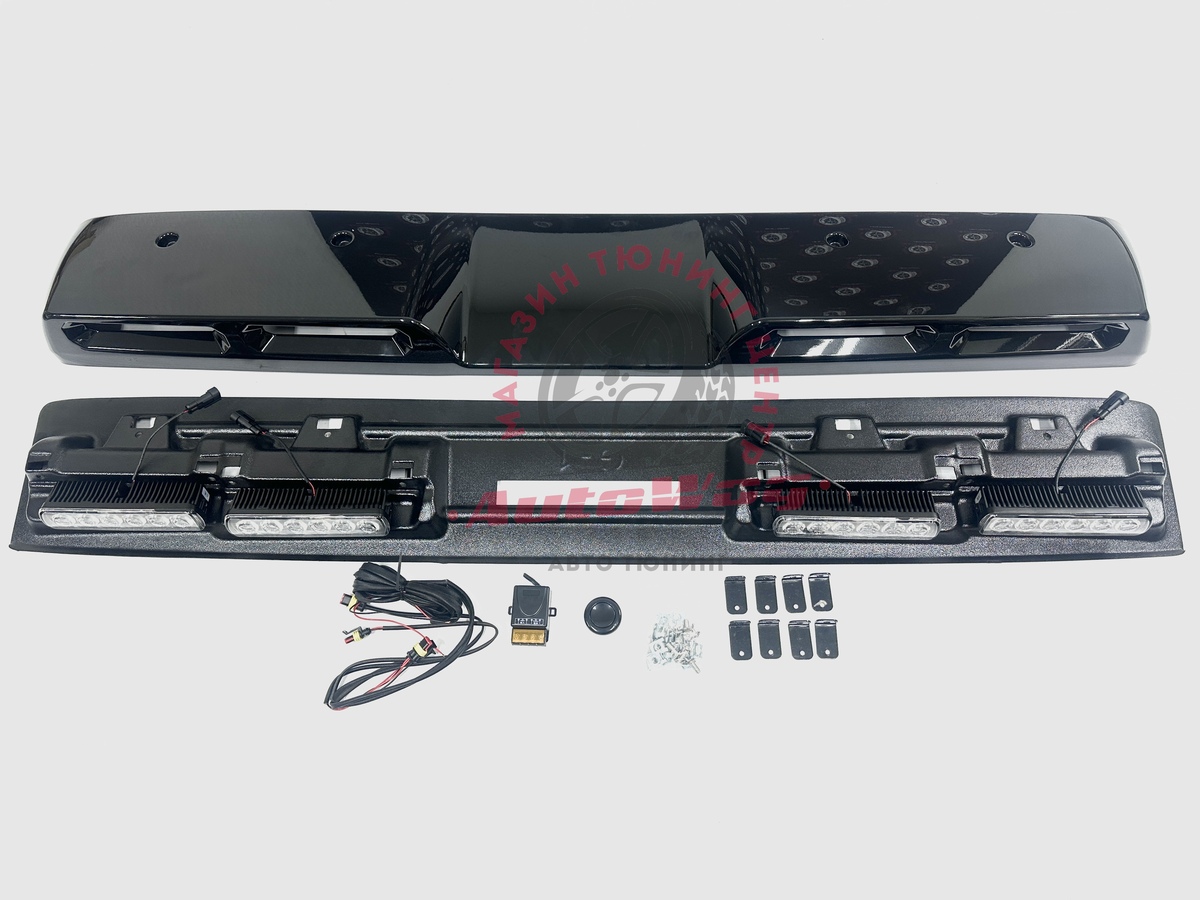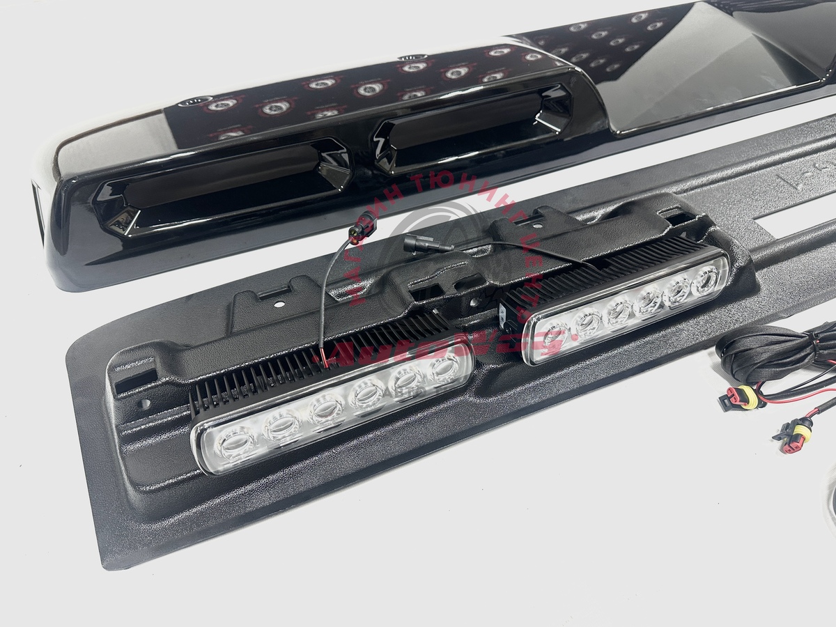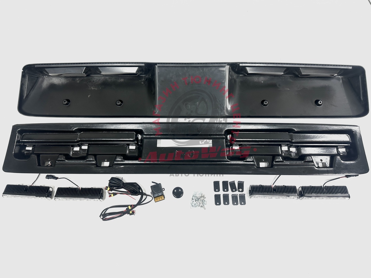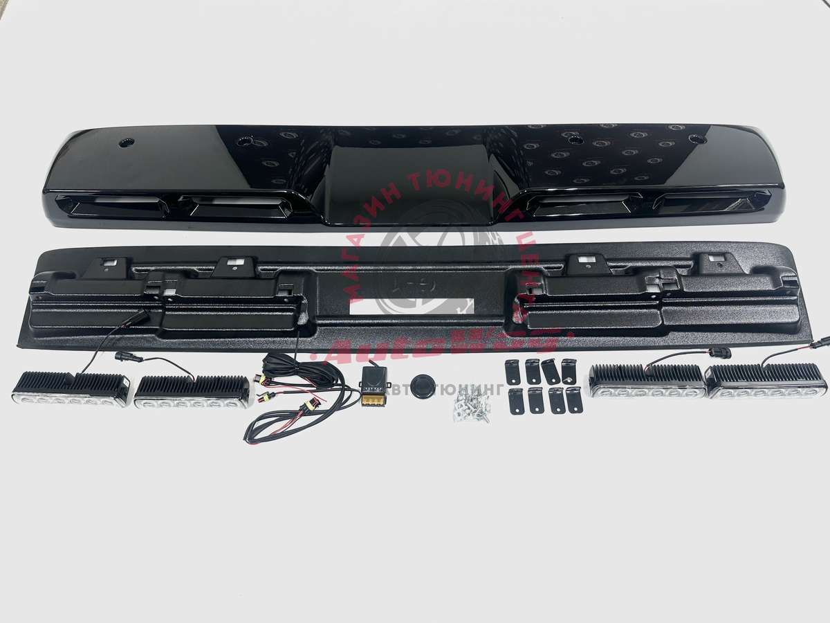 В комплекте: спойлер, 4 ходовых огня, проводка, компьютерный блок управления, пульт, крепления