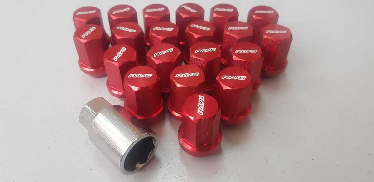 Облегченные дюралюминиевые колесные гайки с выбитым логотипом RAYS.