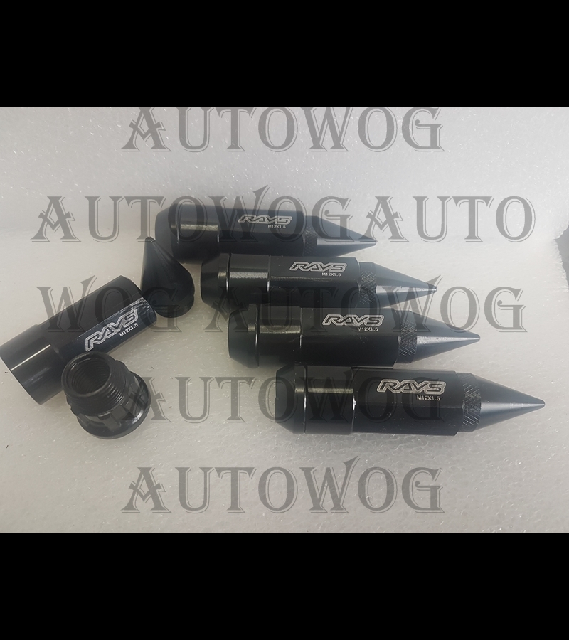 Гайки колёсные RAYS М12*1.5 черные 20шт.+1ключ (из 3-х частей) карандаш