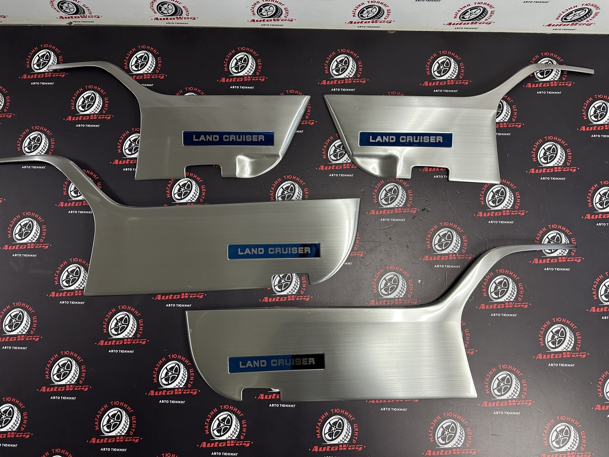 Накладки на внутреннюю сторону двери с надписью LAND CRUISER синего цвета