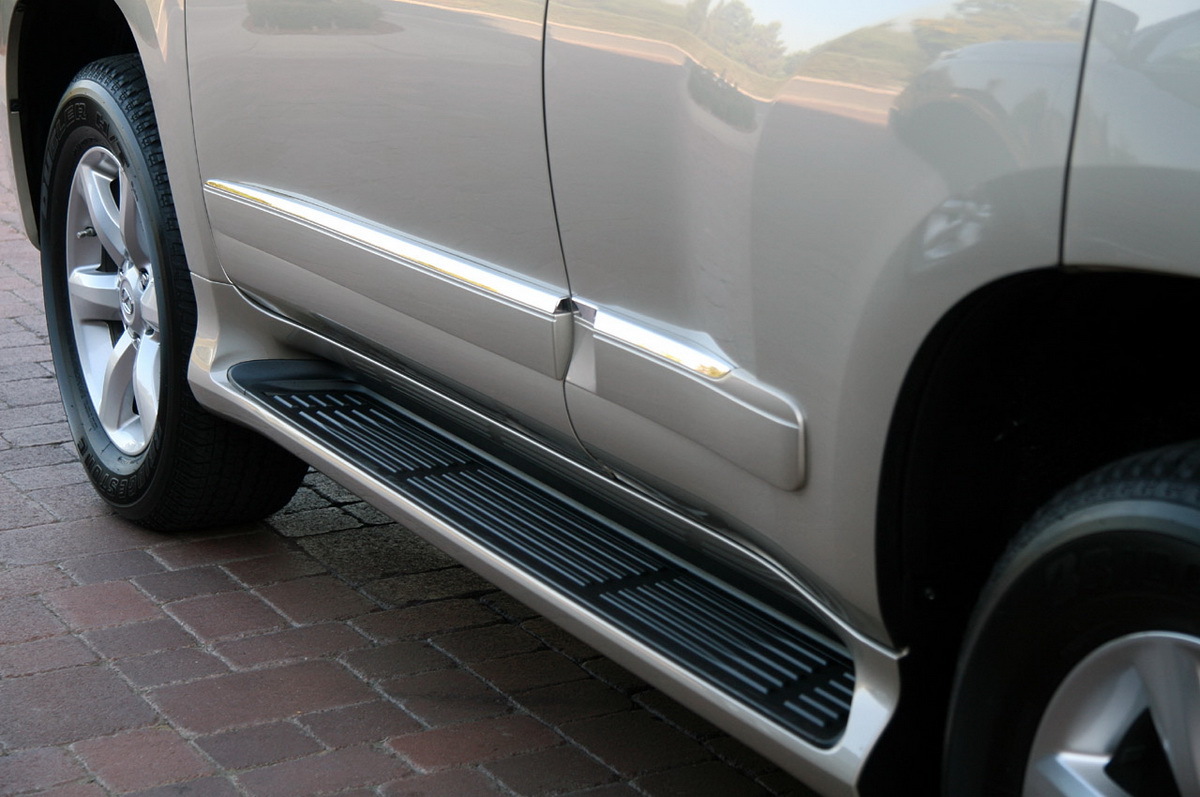 Пороги Prado 150 стиль Lexus GX 460 с металлической подножкой, усиленные, серебро