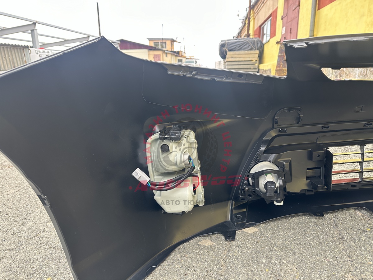 В комплекте: туманки (ВАЖНО - ходовой огонь диодный, поворотник), эмблема, бампер, решетка в бампер (черный глянец), защита днища, заглушки под буксир, рамка под номер + резинка уплотнительная