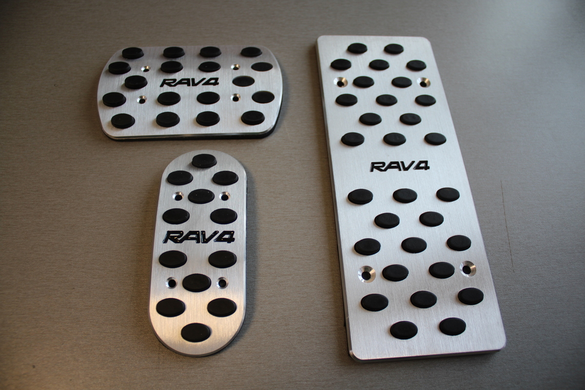 накладки на педали для Rav4 в 30 и 40 кузове.Материал-алюминий на резиновой подложке.