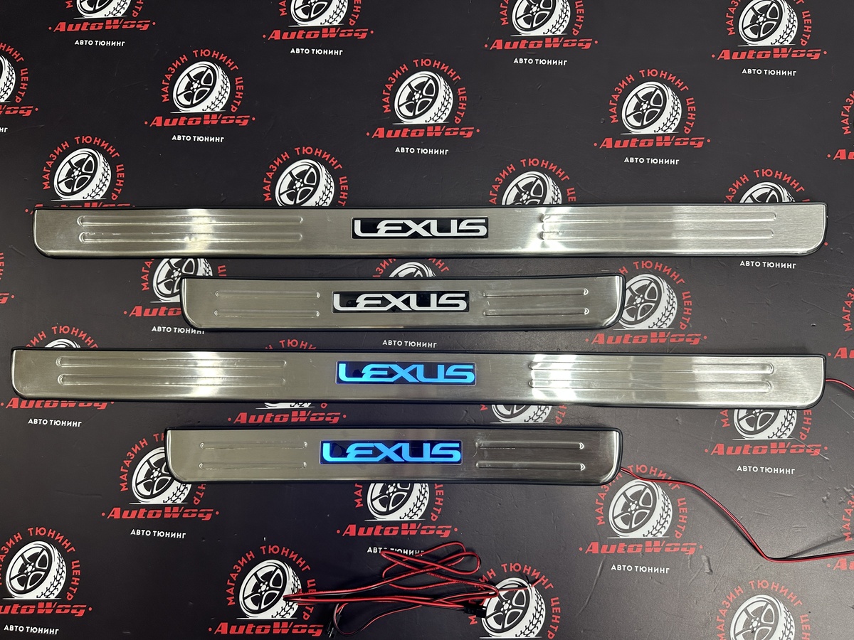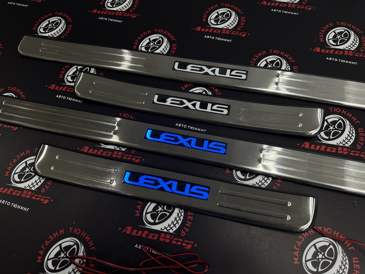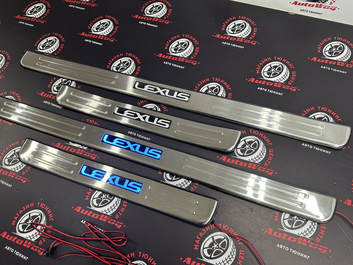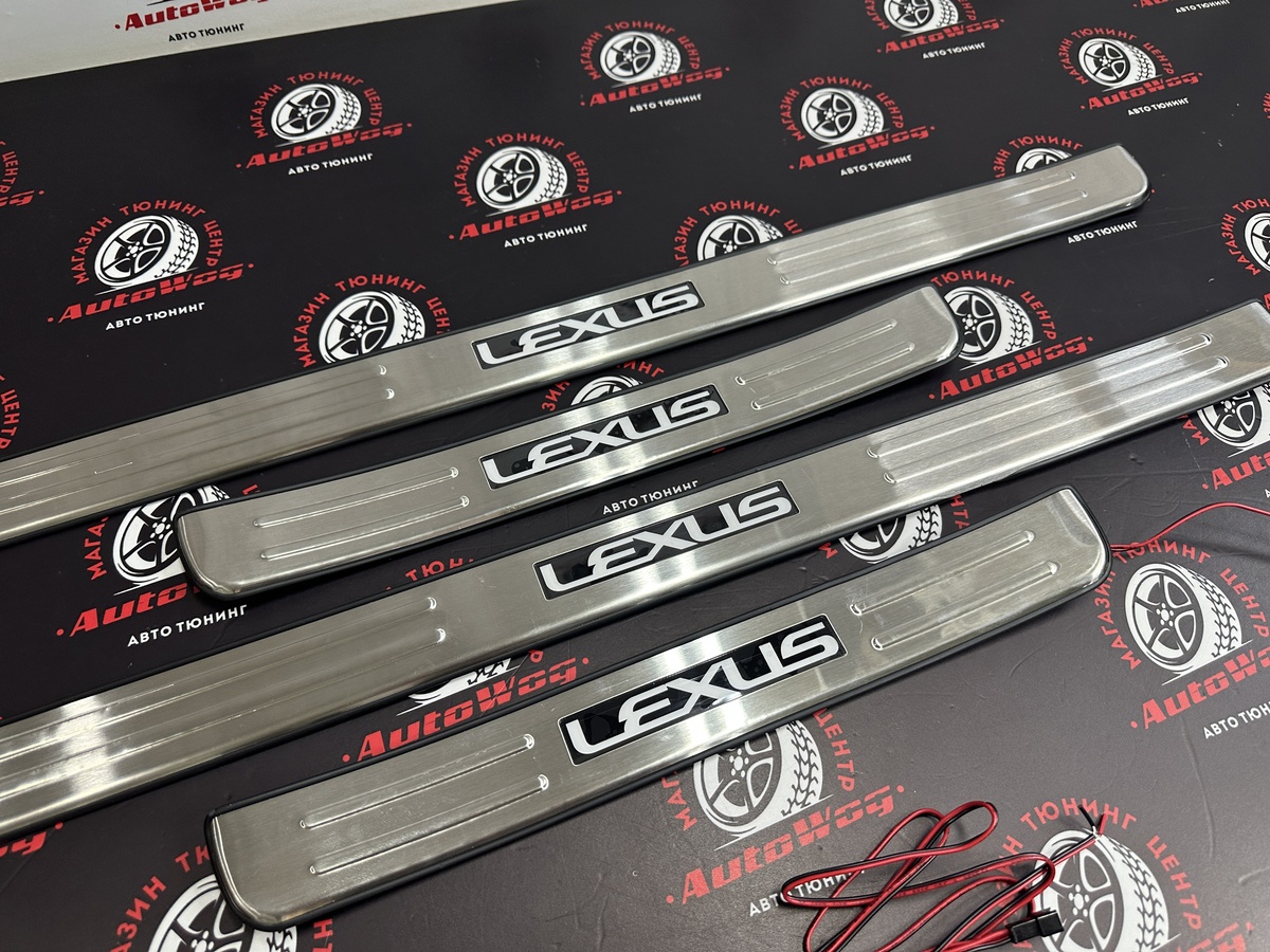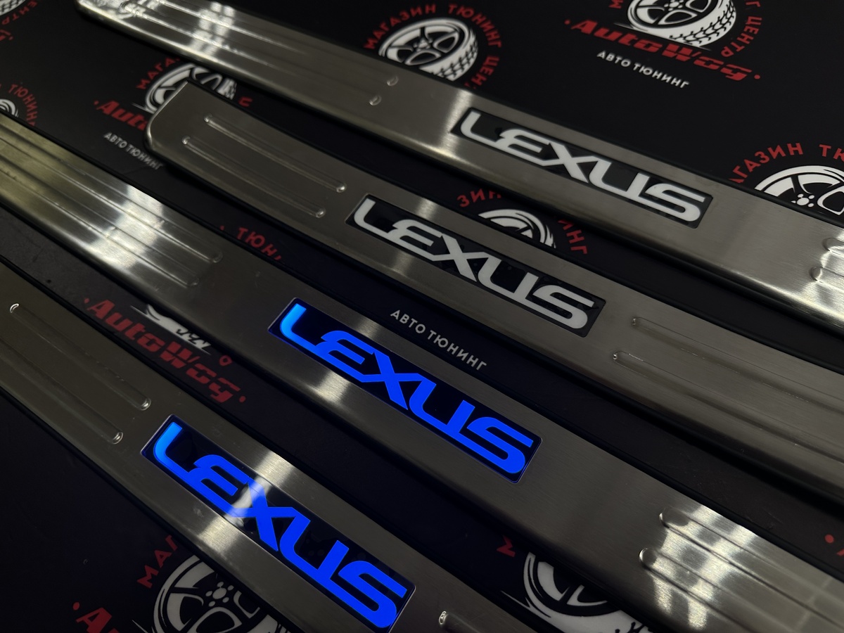 Накладки на пороги дверей Lexus RX350 / RX270 / RX450h 2009-2014 год , со светящейся LED надписью "LEXUS"