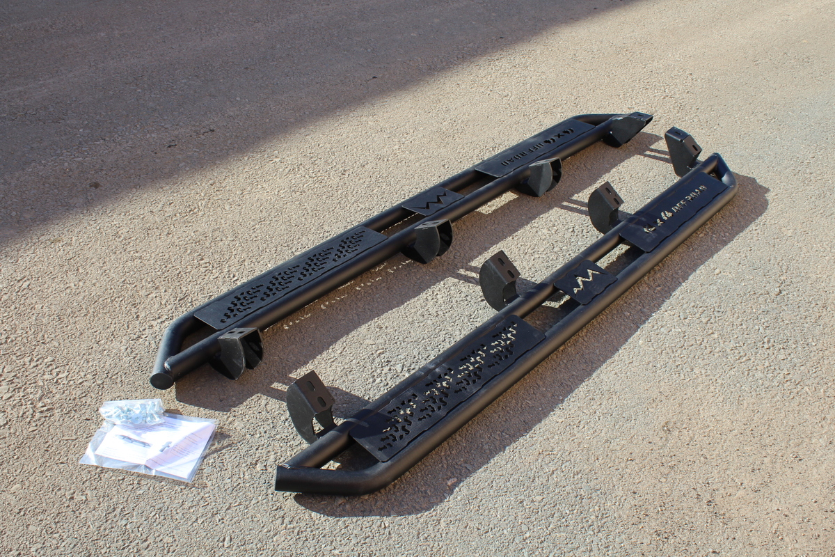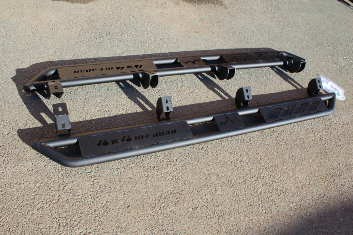 Отличное качество! Сталь.Окрашены в черный цвет. Очень крепкие ,будут служить как доп . боковая защита.