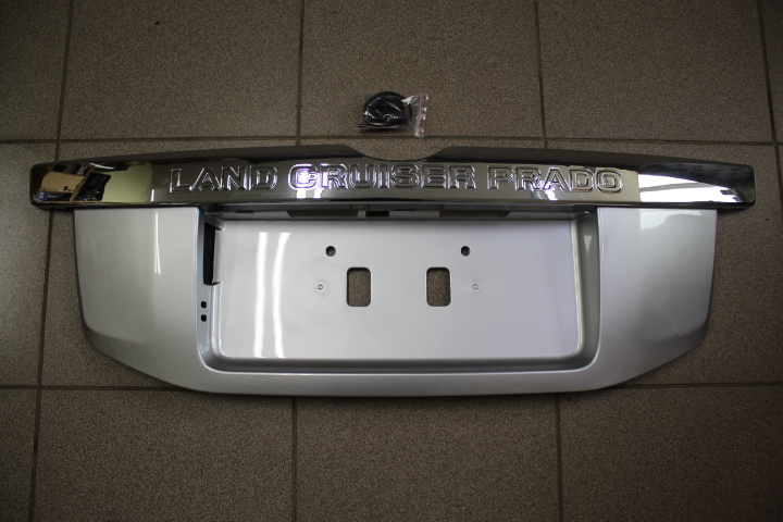 Планка на заднюю дверь под номер.Дизайн Прадо 150 рестайлинг 2014+ год. Верхняя планка хромированная. Нижняя -цвет серебро.