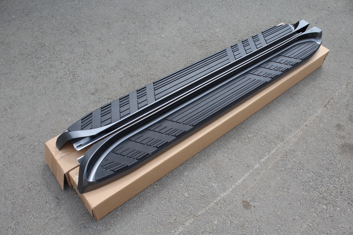 Цвет темно-серый. В комплекте 2 полноценные подножки с металлической основой и все необходимые крепления к кузову