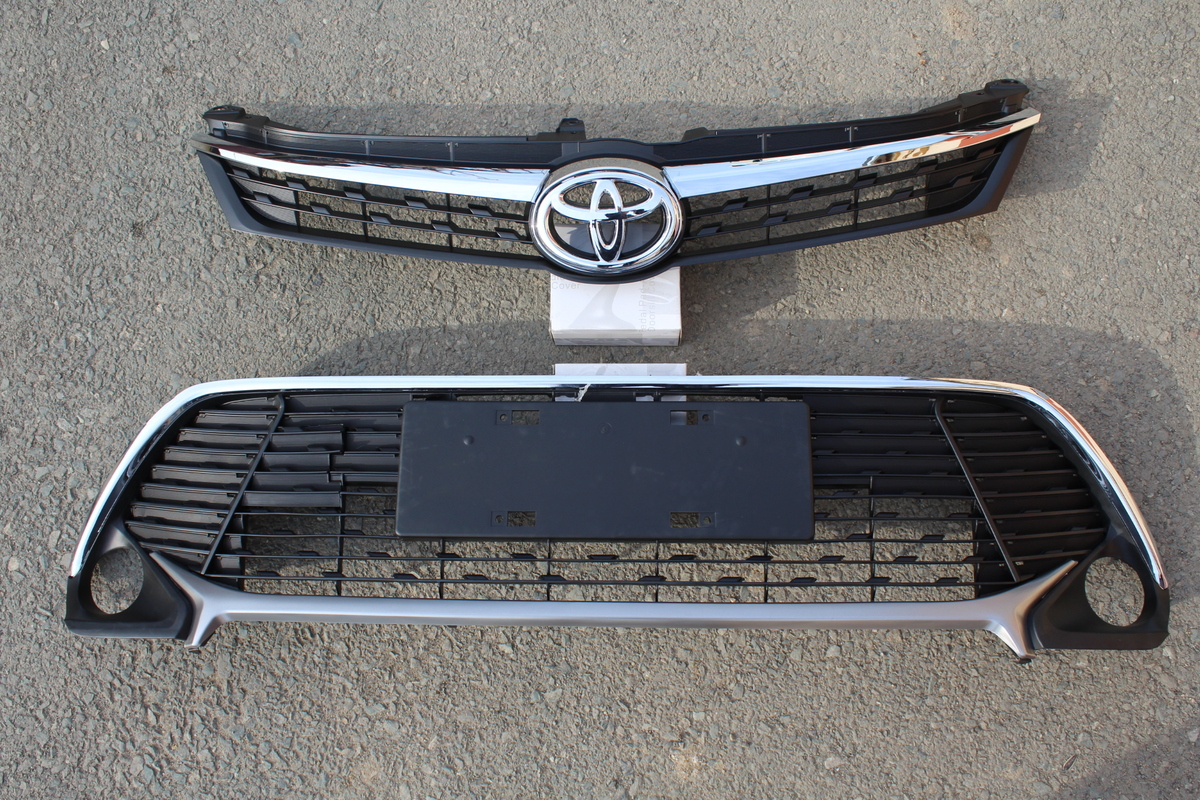 Комплект- решетка радиатора и решетка бампера для Camry V50 / V55 2015-2016 года, в стиле 2017-2018 года