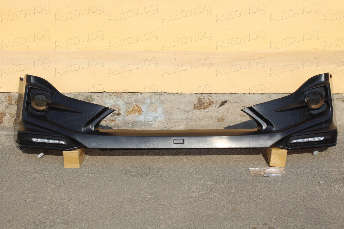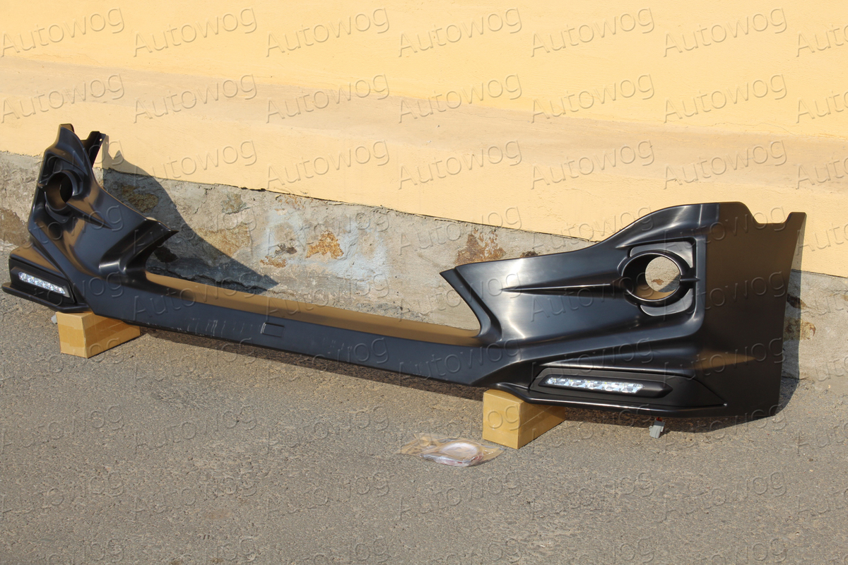 Губа передняя Alphard H30, 2015, 2016, 2017 год, дизайн TRD с диодными ходовыми огнями.