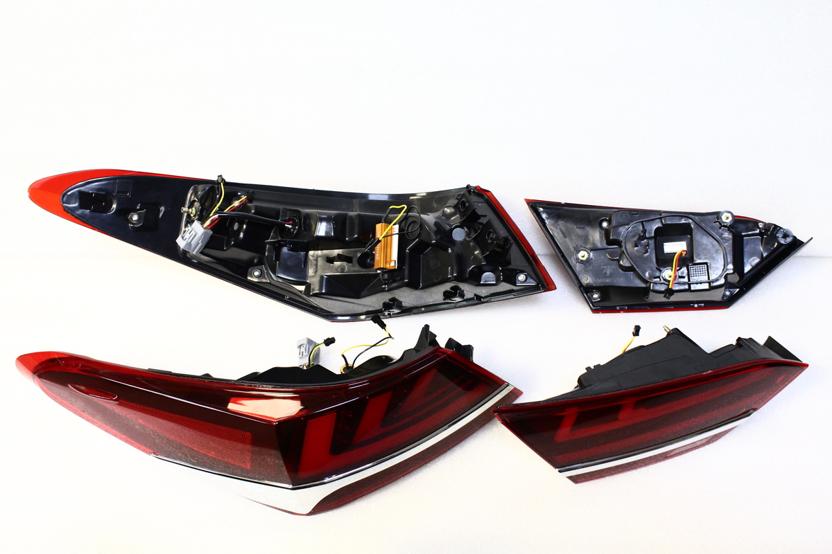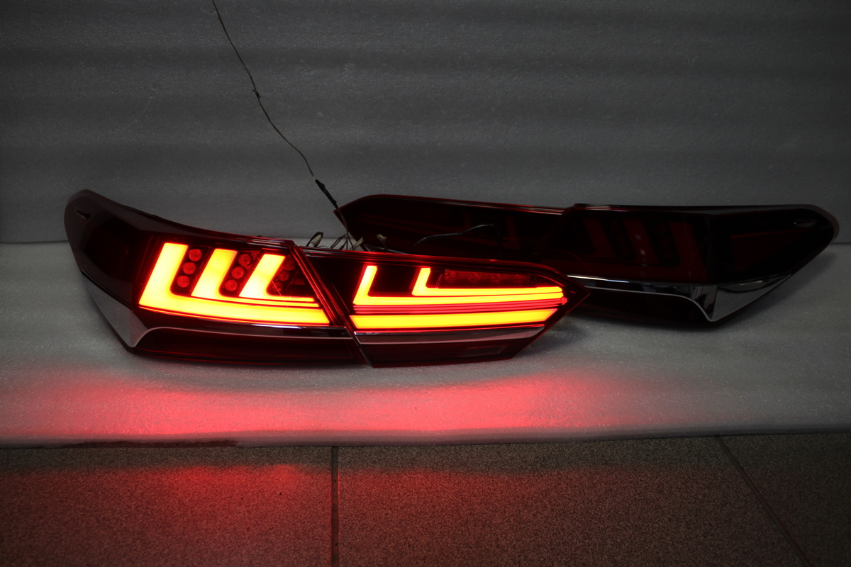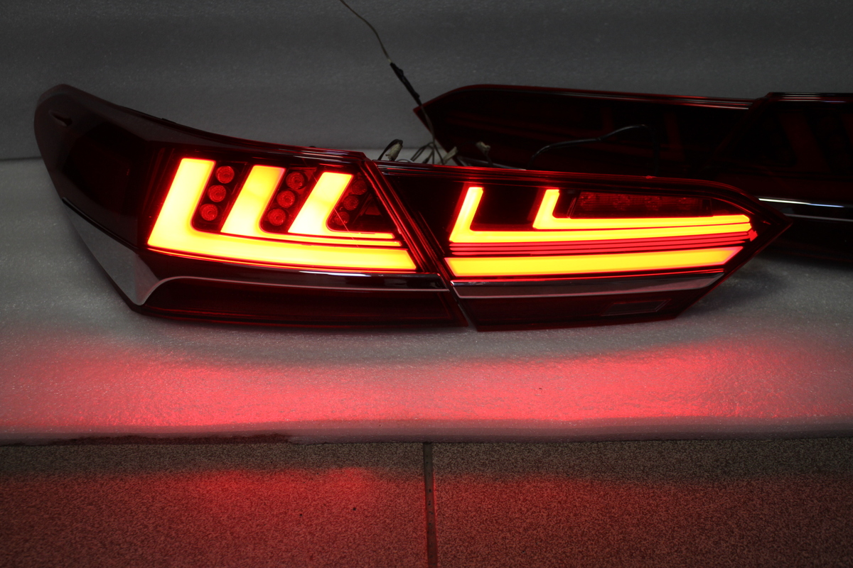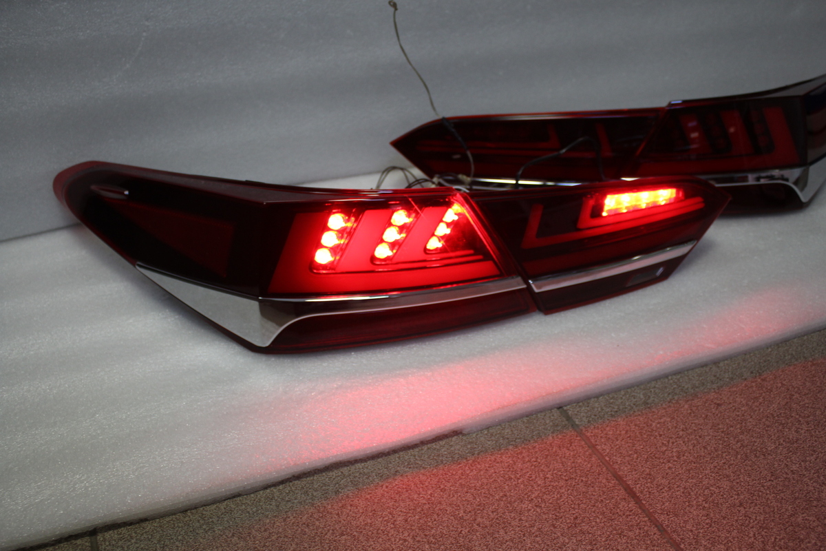 Стопы на новую Toyota Camry 70 / v70, дизайн Lexus , красные, "динамические". Полностью диодные, с "бегающим " поворотником в стиле Лексус.