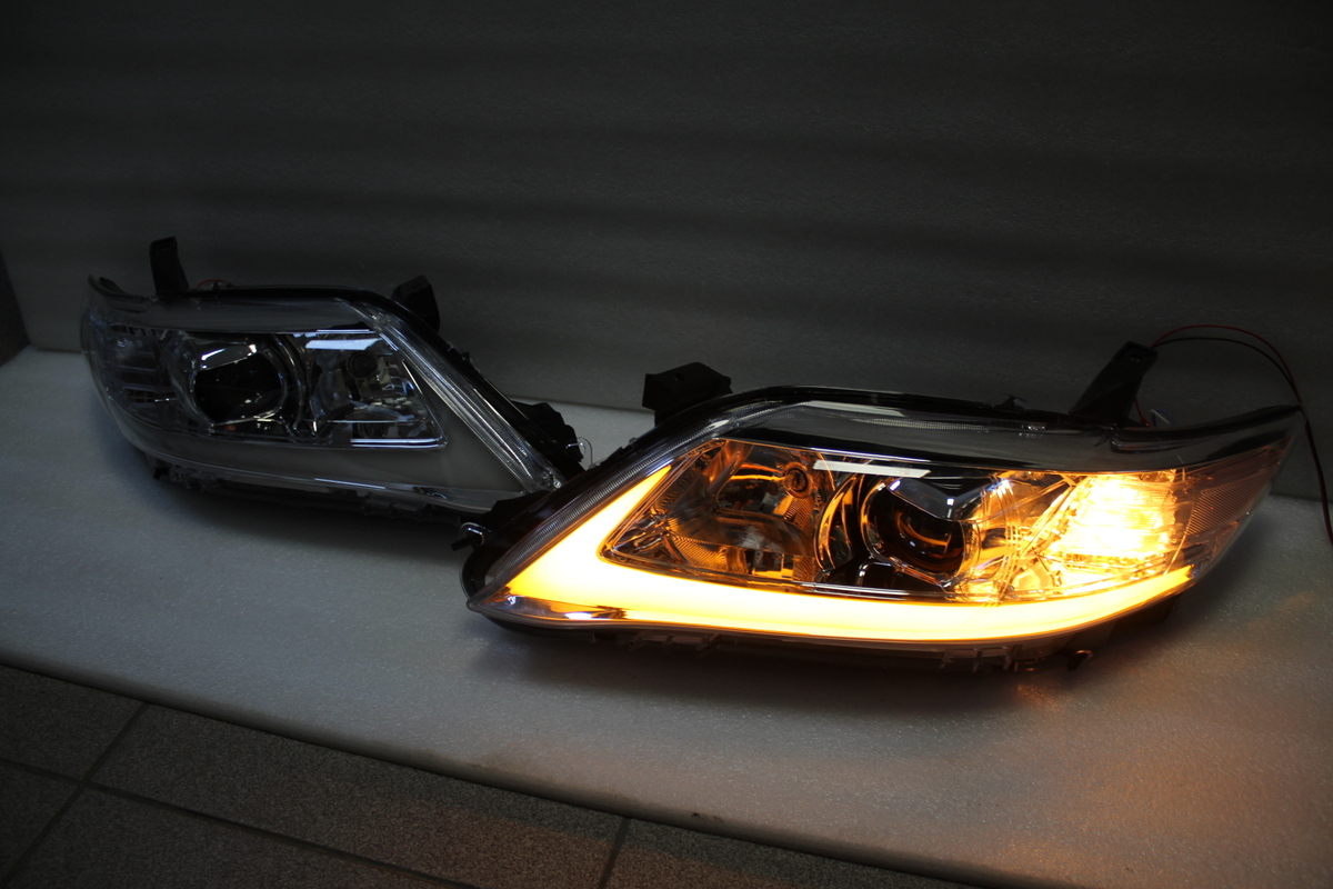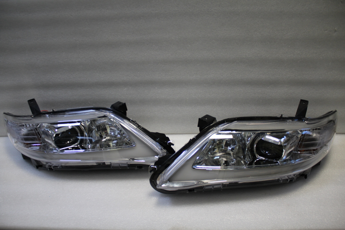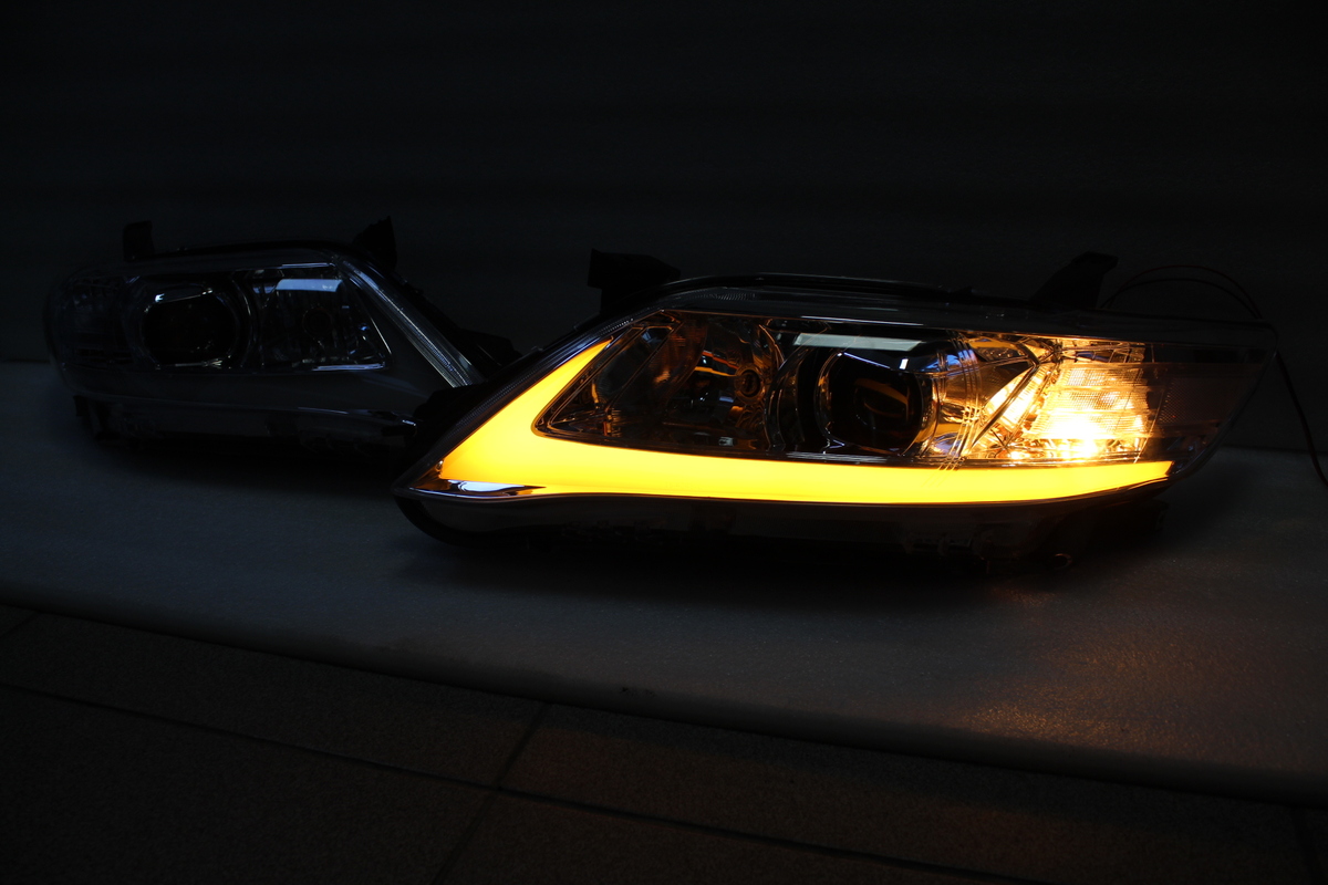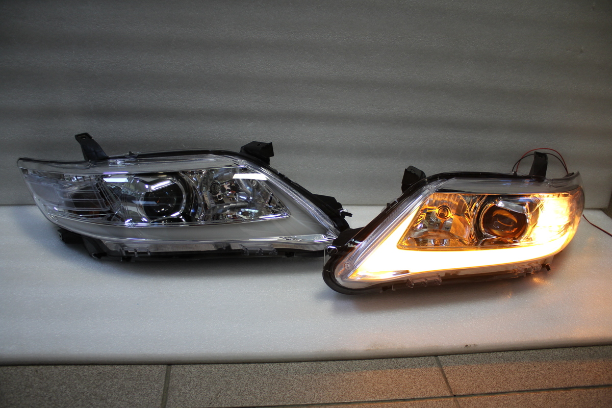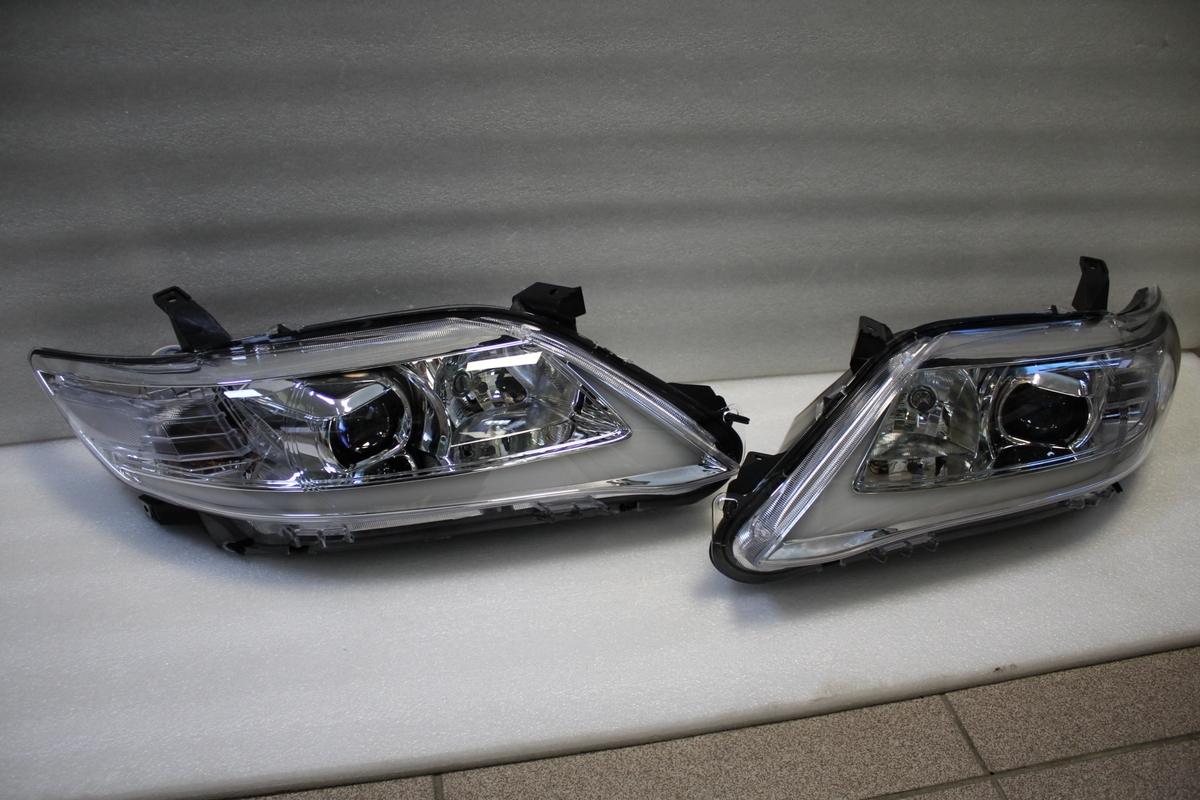 Фары тюнинговые на Camry V40 с 2009 по 2011 год. Светлый хром. С "бегающим" повторителем поворота. темные тоже есть.
