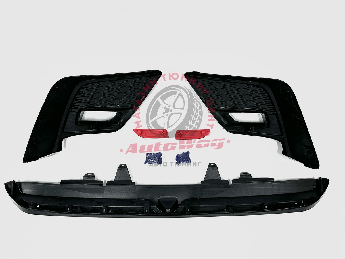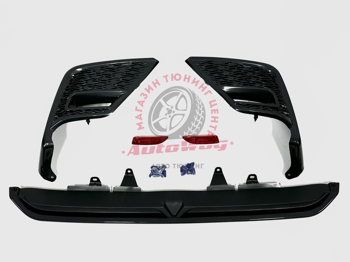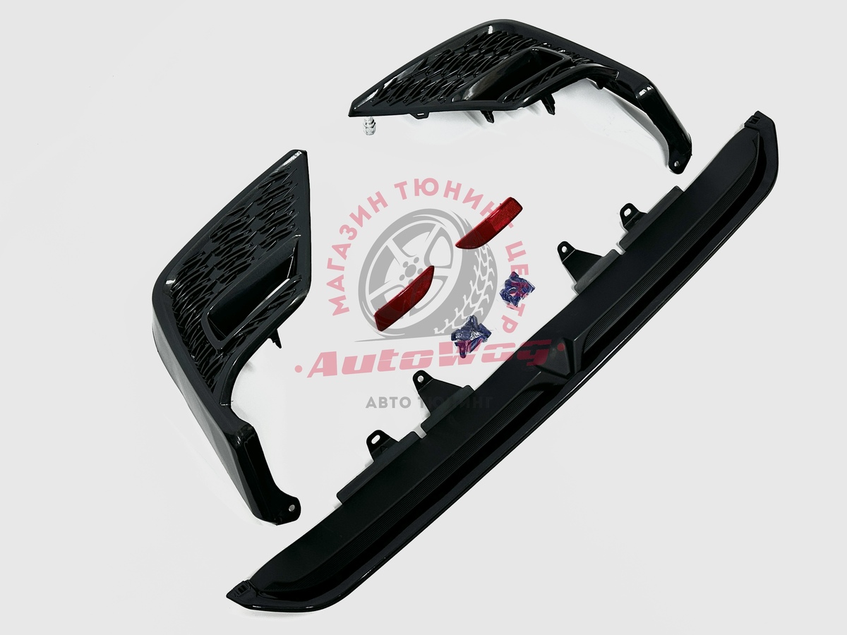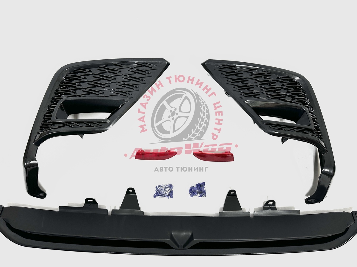 Устанавливается нижняя накладка взамен штатной, под боковые накладки нужно делать отверстия дополнительные в бампере для установки.