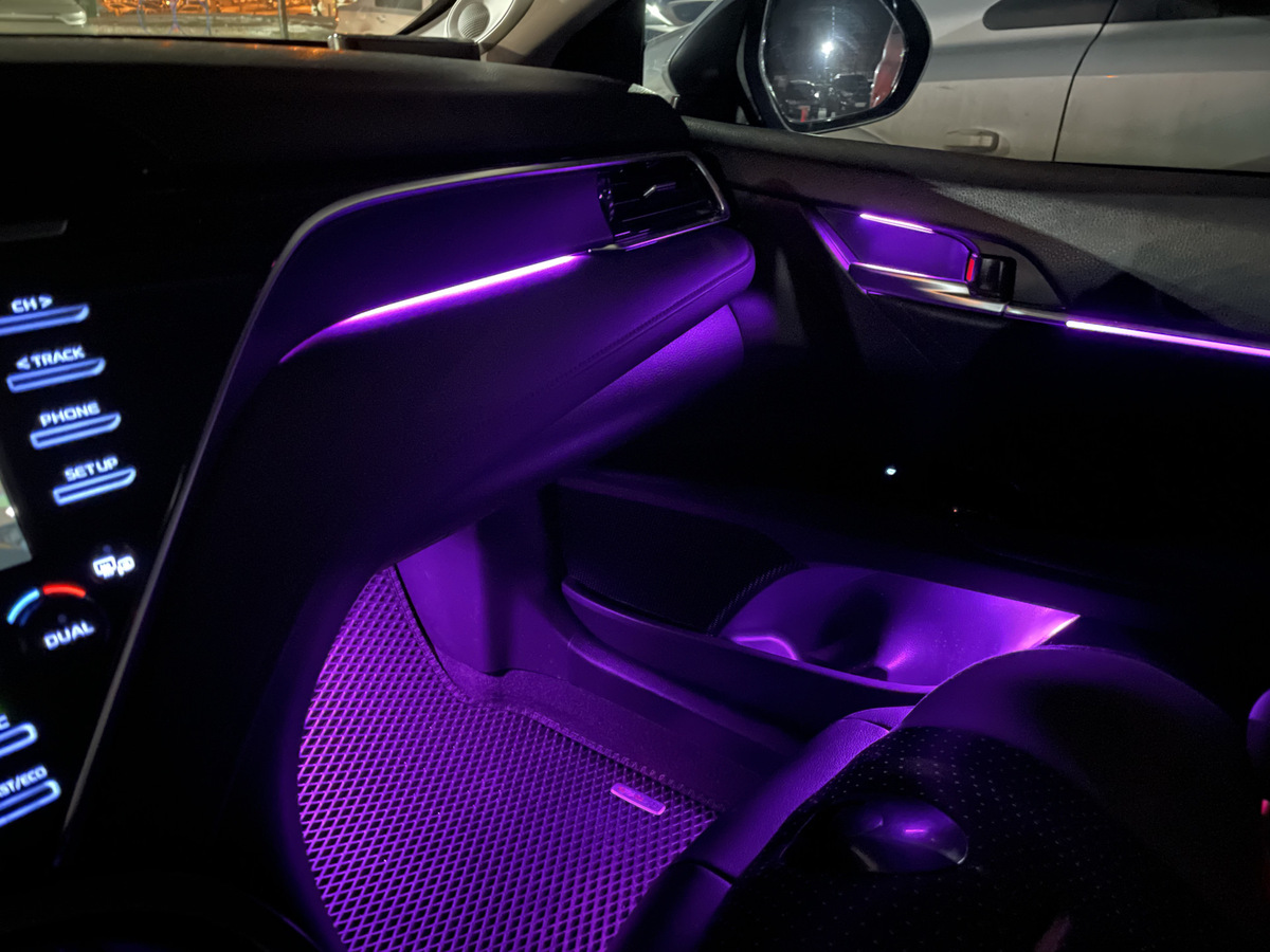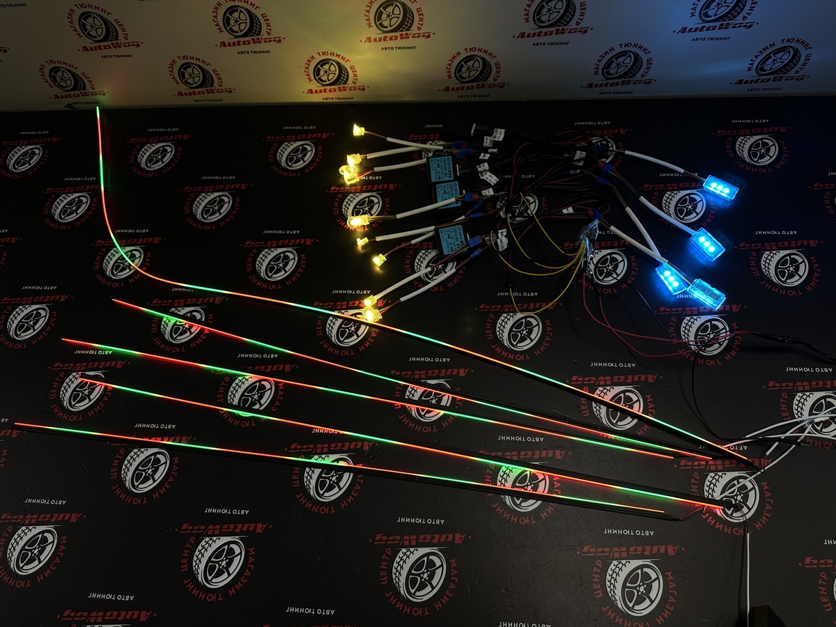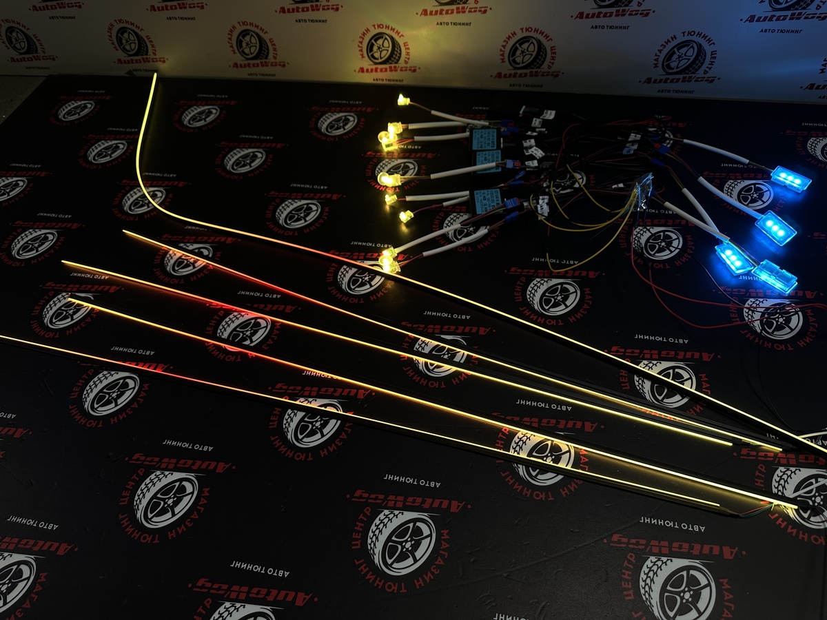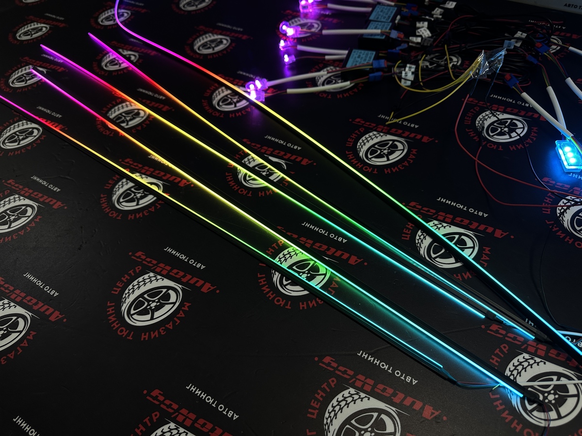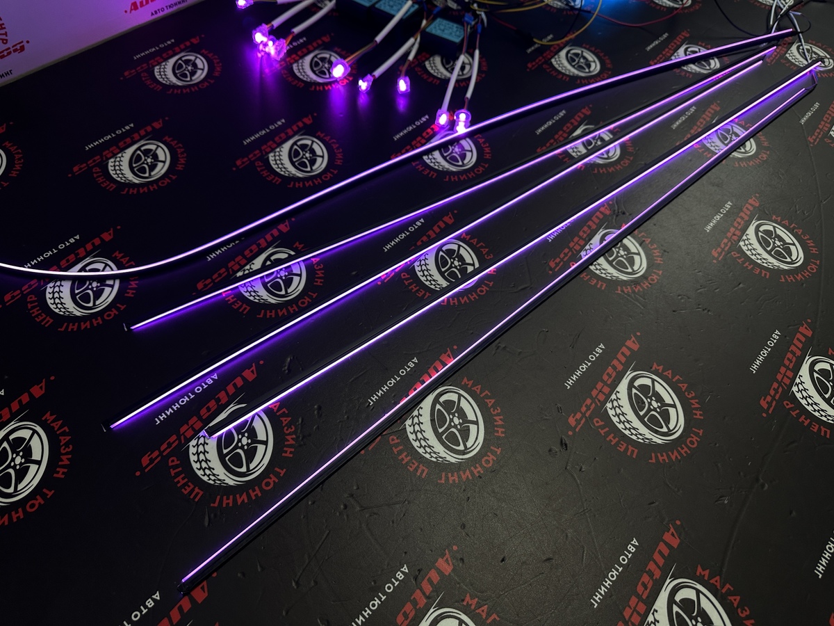В комплекте: 6 диодных лент, 12 дополнительных подсветок (можно подсветку в ноги, в ручки подсоединить),  блоки управления, провода для подключения