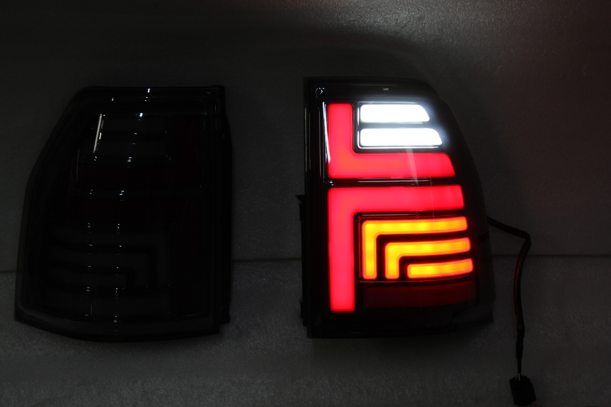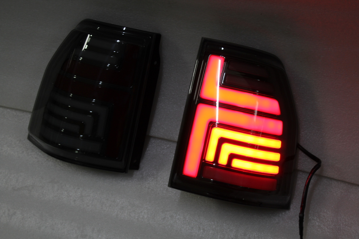 Стопы на Pajero V80 V90 , 2006-2020 год- динамические, с функцией "приветствия". Поворотник "бегающий".