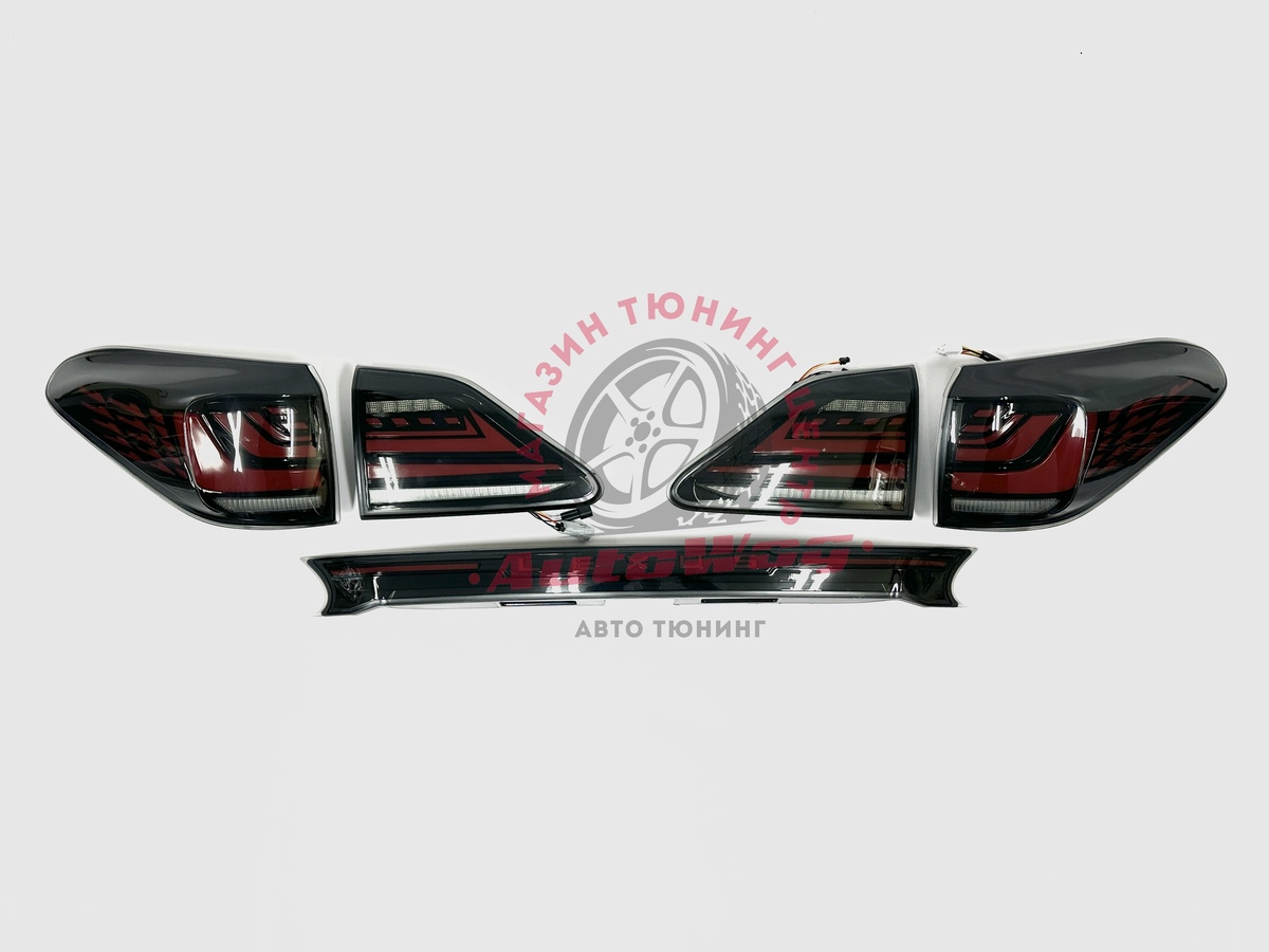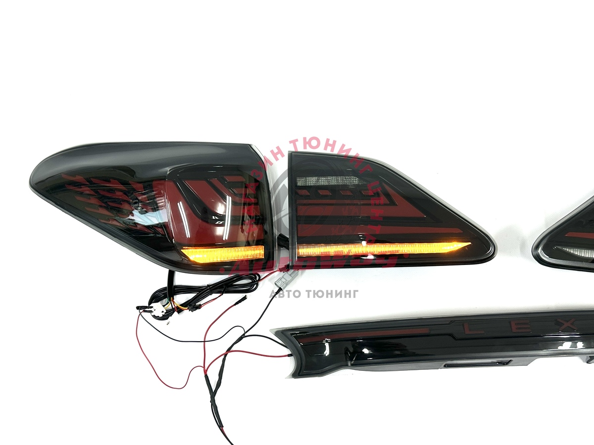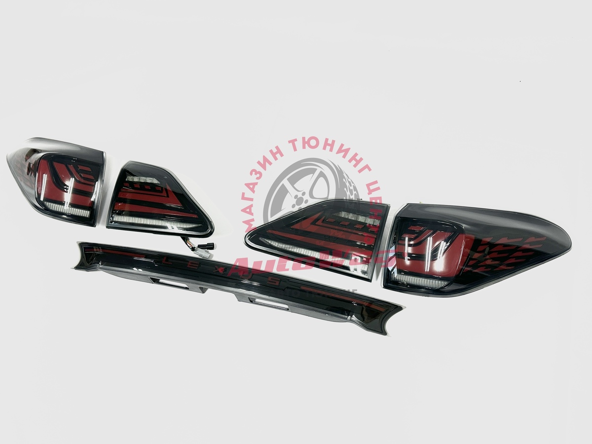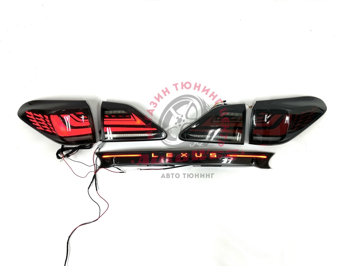 LED задние фонари для Lexus RX270 / RX350 / RX450h — комплект со стопами и планкой «Lexus»
