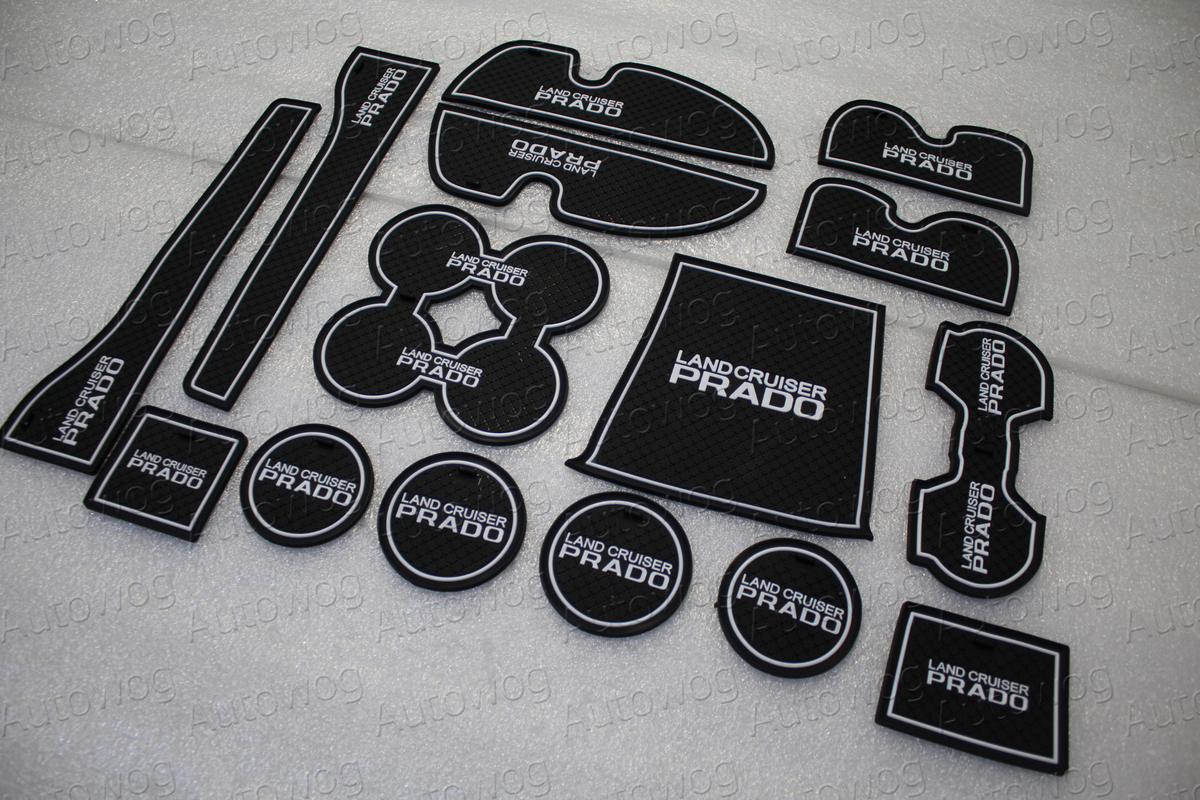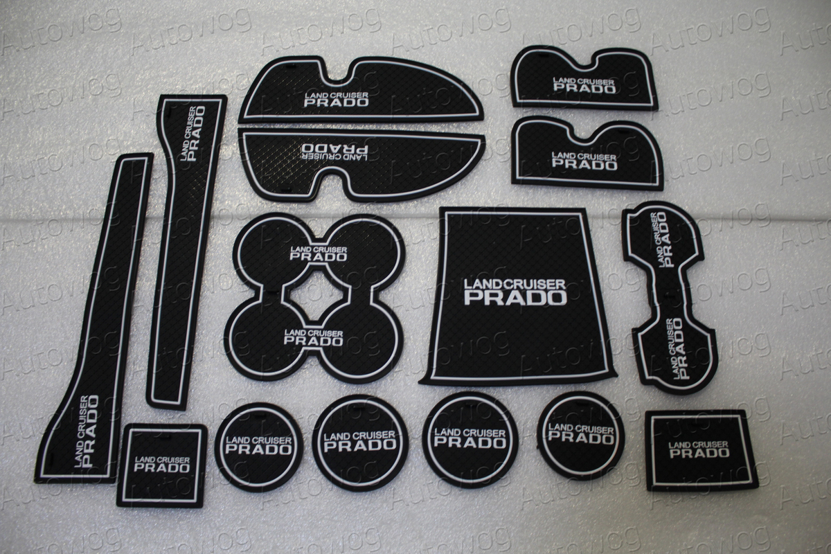 Коврики в кармашки и ниши салона и консоли Prado J150, черно-белые