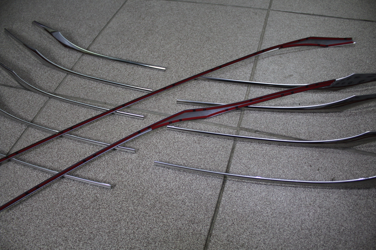 Крепятся сверху на двухсторонний скотч к элементам штатной решетки.