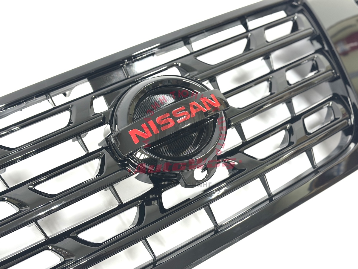 Выполнена в антихроме (полностью черная), эмблема в стилистике NISMO с красным надписью "NISSAN"\