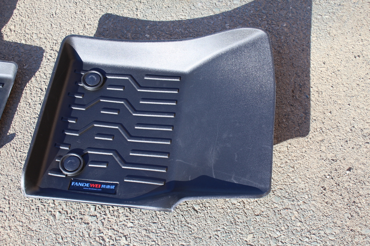 Идеально повторяет геометрию пола салона автомобиля. Полужесткий- не теряет свою форму в жару и холод. Без запаха. Высокие борта не допускают разлива жидкости внутрь салона. Очень прочный к износу и механическим повреждениям.